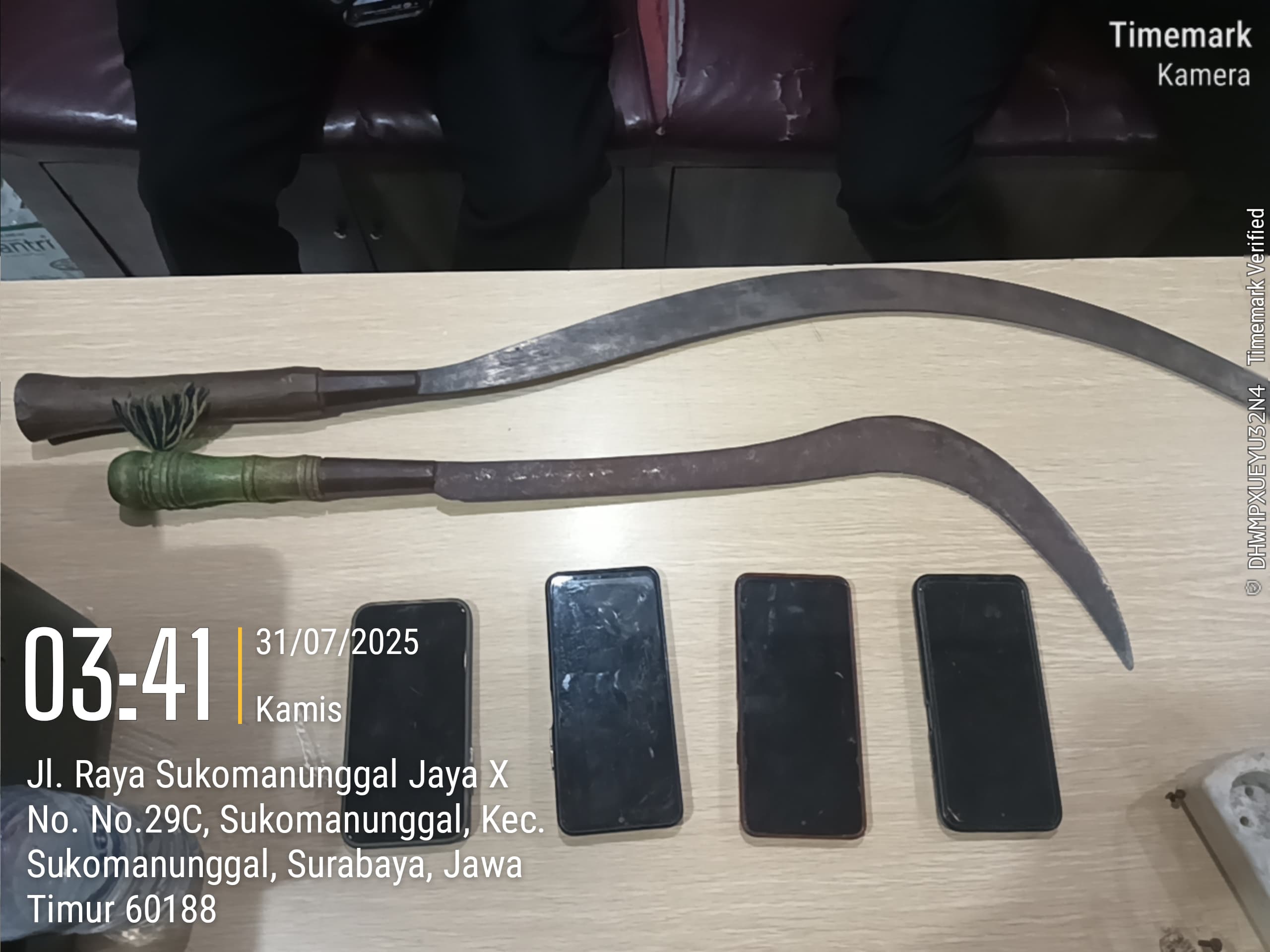 Kepada awak media, Kanit Reskrim Polsek Sukomanunggal, Ipda Eko Yudha menerangkan bahwa indikasi tawuran akan terjadi di Jalan Simogunung Barat II A, Kelurahan Simomulyo, Kecamatan Sukomanunggal.