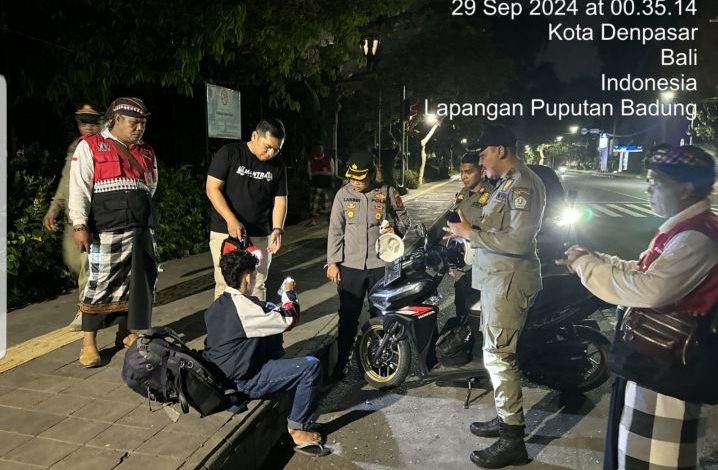 Atensi Kerawanan Malam Minggu Gabungan Patroli Polsek Denpasar Barat Sisir Lapangan Puputan Badung