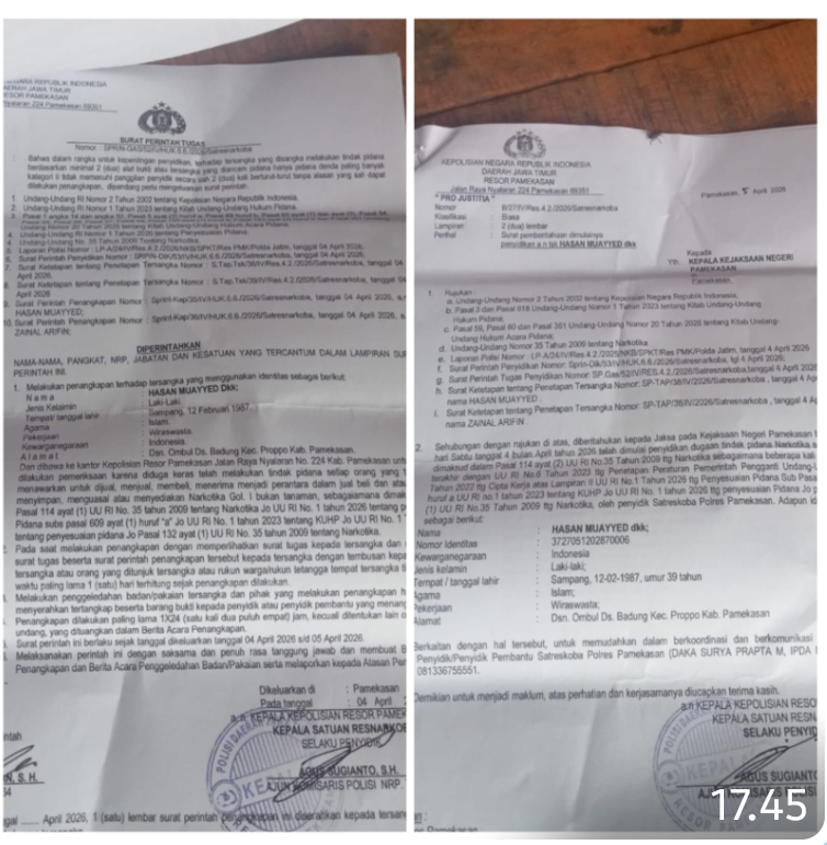 Namun, tiba – tiba, pada hari Sabtu (11/04/2026) pihak penyidik Satresnarkoba Polres Pamekasan meminta kembali Surat Penangkapan dan Surat Penahanan serta SPDP terhadap Hasan Muhayyed dengan alibi diperbarui dan akan memberikan Surat Penangkapan serta Surat Penanahanan terhadap Zainal Arifin.