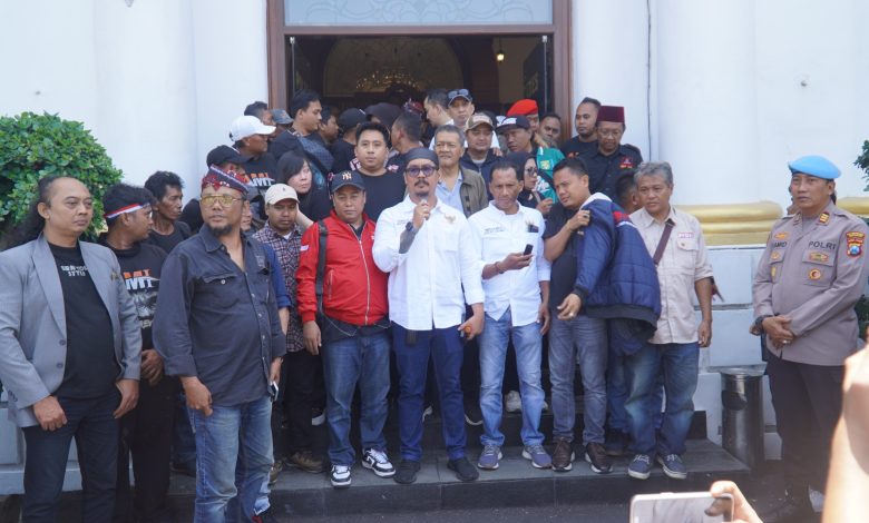 Kapolrestabes Surabaya, Kombes Pol Luthfi Sulistiawan, menerima kunjungan dari aliansi masyarakat Surabaya yang menyatakan sikap tegas dalam deklarasi damai, Selasa (2/8/25).