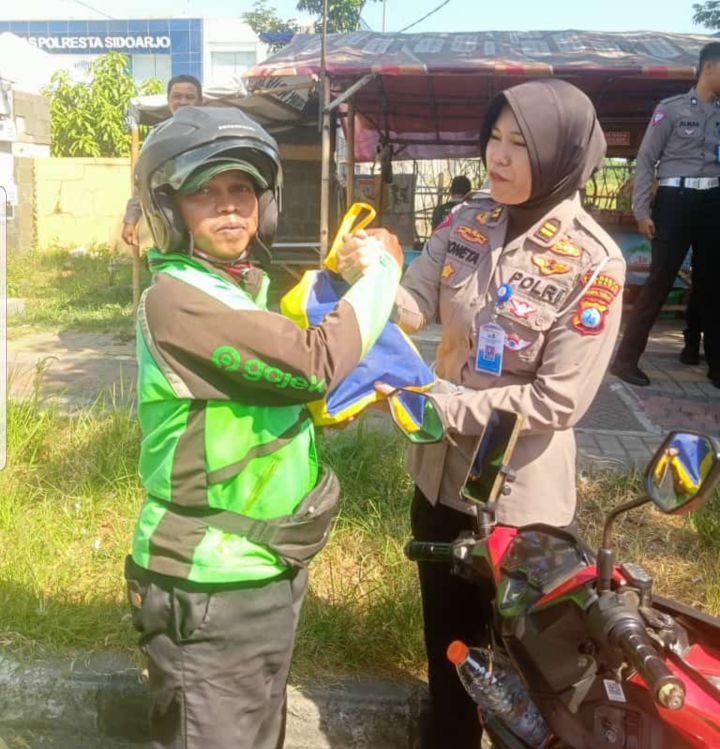 Sidoarjo||Liputankasus.com – Personel Satlantas Polresta Sidoarjo membagikan sembako kepada seluruh masyarakat yang mentaati peraturan lalu lintas dan taat membayar pajak.