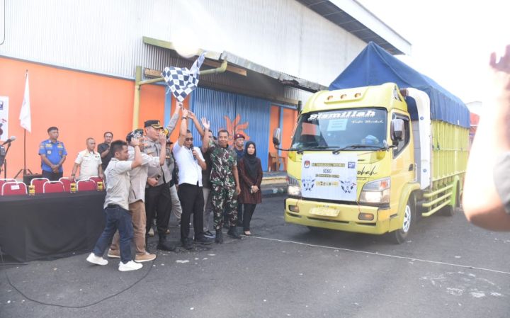 Bondowoso||Liputankasus.com – Kapolres Bondowoso AKBP Lintar Mahardhono, SH. SIK. MIK. bersama Forkopimda melepas pendistribusian logistik pemilu ke 23 Kecamatan di Kabupaten Bondowoso.