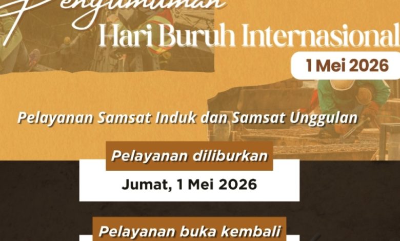 Melalui pengumuman resmi, seluruh layanan Samsat Induk maupun Samsat Unggulan diliburkan pada Jumat (1/5/2026) dan akan kembali beroperasi normal pada Sabtu, 2 Mei 2026. Kebijakan ini diambil sebagai bentuk penghormatan terhadap Hari Buruh Internasional.