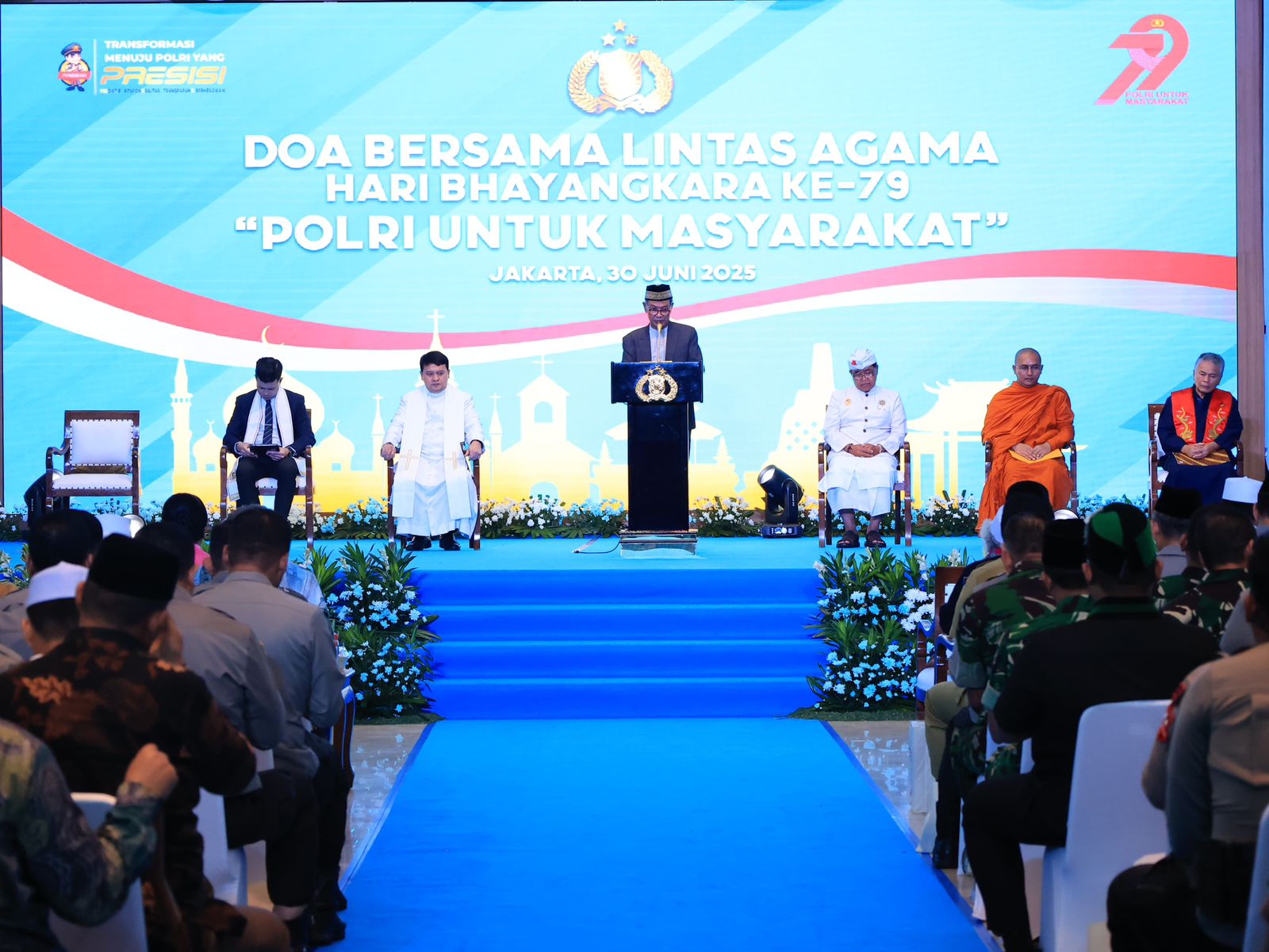 Jakarta||LiputanKasus.com — Dalam semangat menjaga persatuan dan merawat kebhinekaan bangsa, Kepolisian Negara Republik Indonesia (Polri) menggelar kegiatan Doa Bersama Lintas Agama dalam rangka menyambut Hari Bhayangkara ke-79. Kegiatan ini berlangsung di Auditorium Mutiara STIK Lemdiklat Polri, pada Senin, (30/2025), pukul 14.00 WIB.