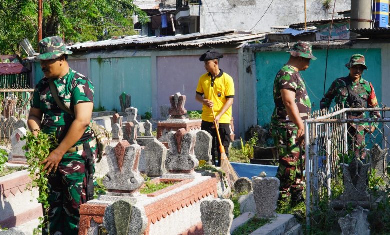 Kompak, TNI dan Polisi Bakti Religi Sambut Hari Bhayangkara ke -79 Bersihkan Makam Pegirikan Surabaya