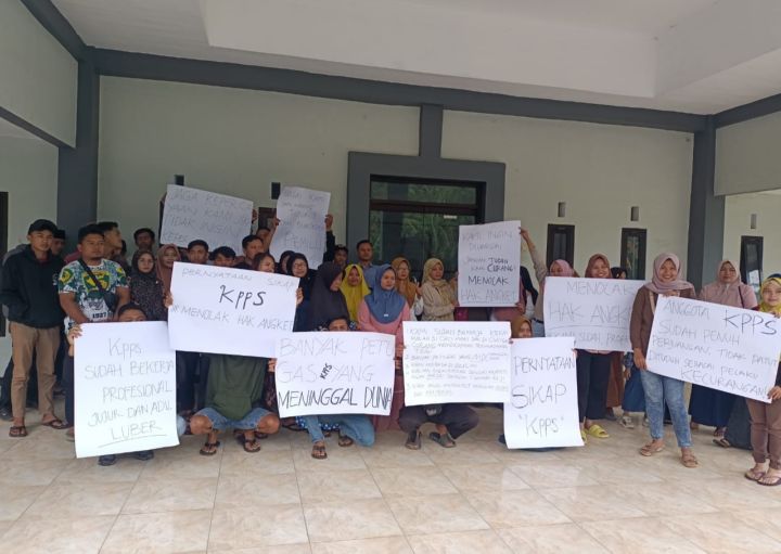 Mereka mengaku sudah bekerja dengan transparan serta bertaruh nyawa karena bekerja tanpa henti atau nonstop. Massa berharap kerja keras mereka sebagai petugas KPPS bisa dihargai.