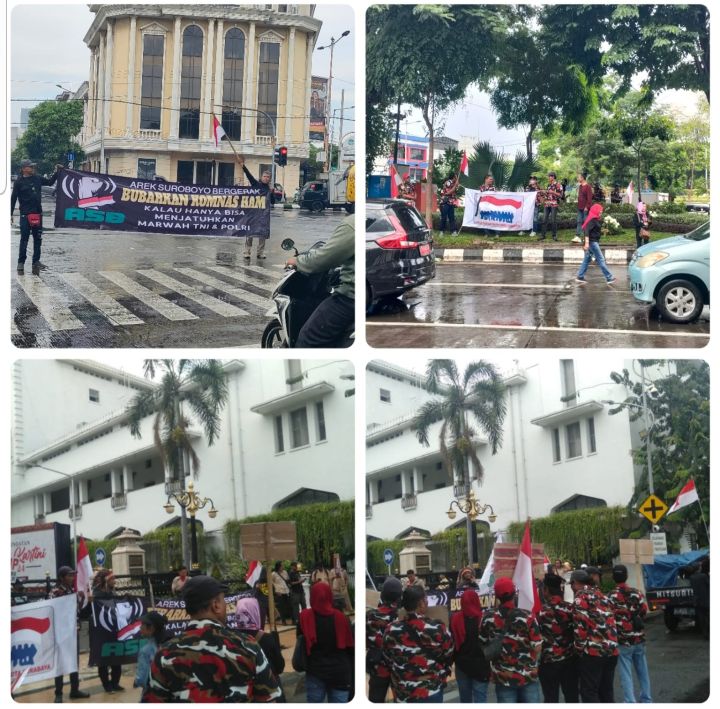 Surabaya||Liputankasus.com – Ormas Laskar Merah Putih ( LMP ) dan Ormas Arek Suroboyo Bergerak ( ASB )turun lapangan dikarenakan kecintaannya pada Negara Kesatuan Republik Indonesia,NKRI Harga Mati,menindaklanjuti dengan adanya isu Nasional terkait Provinsi Papua yang ingin Merdeka dari Kesatuan Republik Indonesia dan adanya pelanggaran HAM yang ditujukan kepada TNI POLRI di Papua. Surabaya,Selasa ( 23/4/2024 ) siang hari di depan kantor Gedung Gubernur Jalan Pahlawan Surabaya.