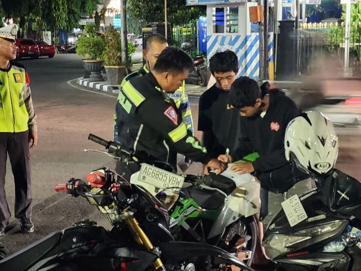 “Saat kami melakukan patroli menemukan segerombolan pengendara motor di simpang empat Jalan Dhoho Kota Kediri,” jelasnya.