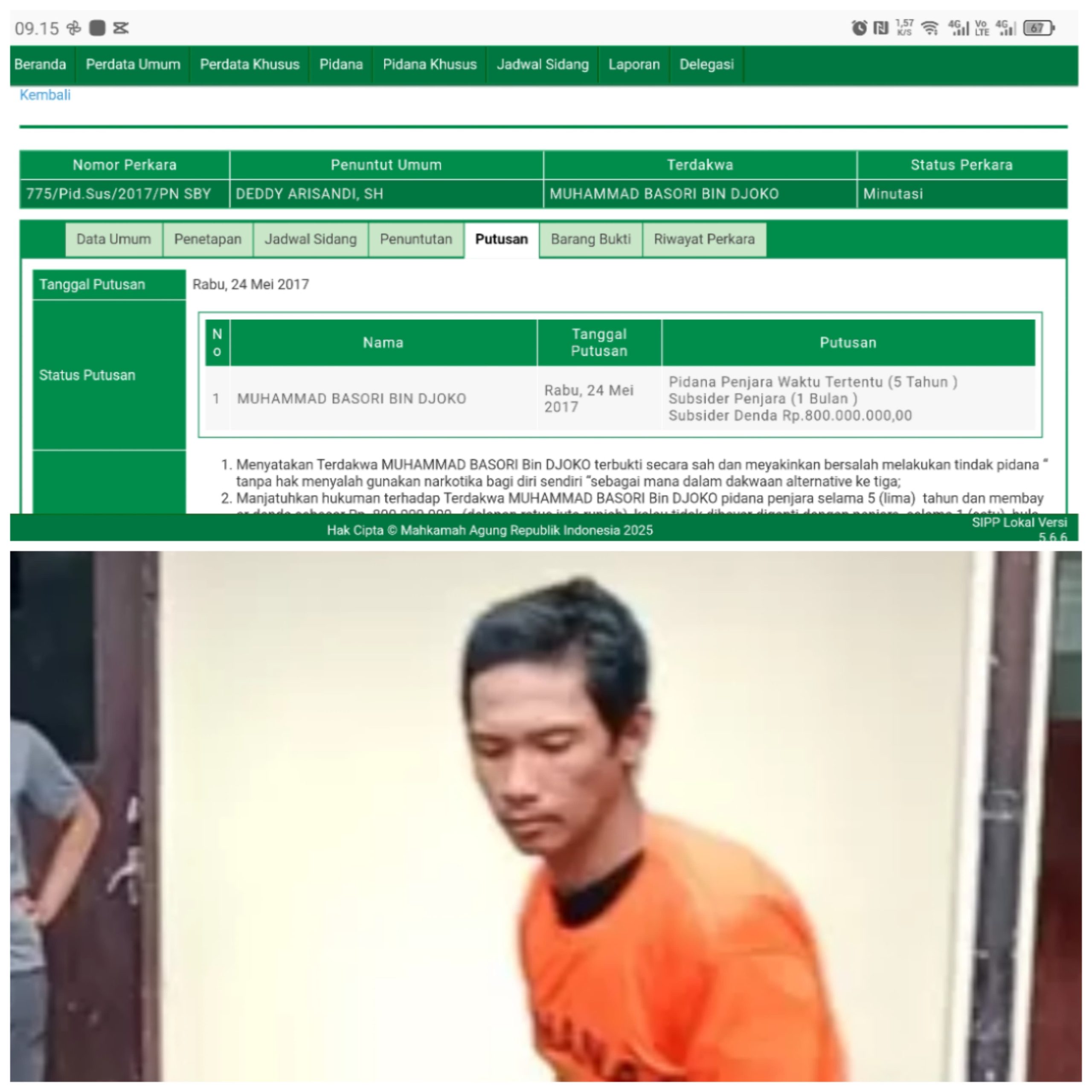 Fakta ini cukup mencengangkan. Dimana, Mochamad Basori merupakan seorang residivis dalam perkara narkoba pada tahun 2017 dengan vonis 5 Tahun Subsider 1 Bulan penjara.