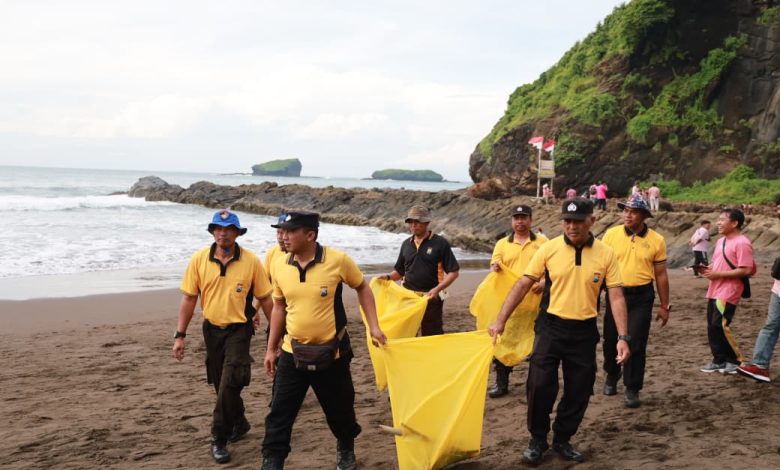 Polres Jember Laksanakan Gerakan Indonesia Asri Bersihkan Pantai Watu Ulo