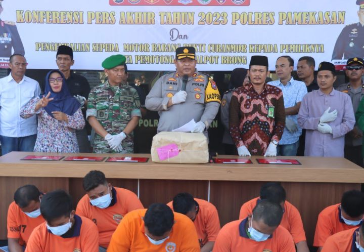 “Berdasarkan data ungkap kasus kriminal, selama tahun 2022, Polres Pamekasan menyelesaikan sebanyak 172 perkara dari 390 laporan,” ujar AKBP Jazuli di hadapan awak media.