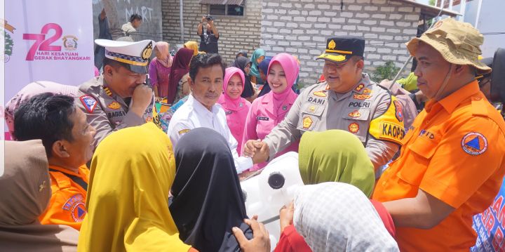 Kapolres Pamekasan juga menyampaikan jika bantuan kali ini juga bertepatan sebagai ungkapan syukur atas Hari Lali Lintas Bhayangkara ke – 69.