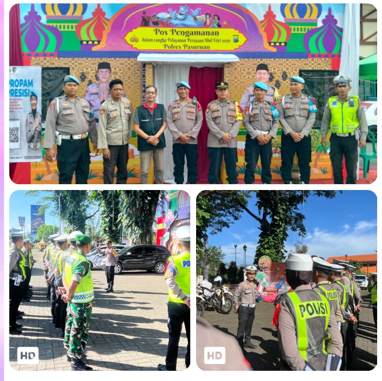 Dalam operasi pengamanan Hari Raya Idul Fitri 1447 H tersebut, ratusan personel gabungan diterjunkan serta sejumlah pos pengamanan dan pelayanan disiagakan di titik strategis wilayah Kabupaten Pasuruan.