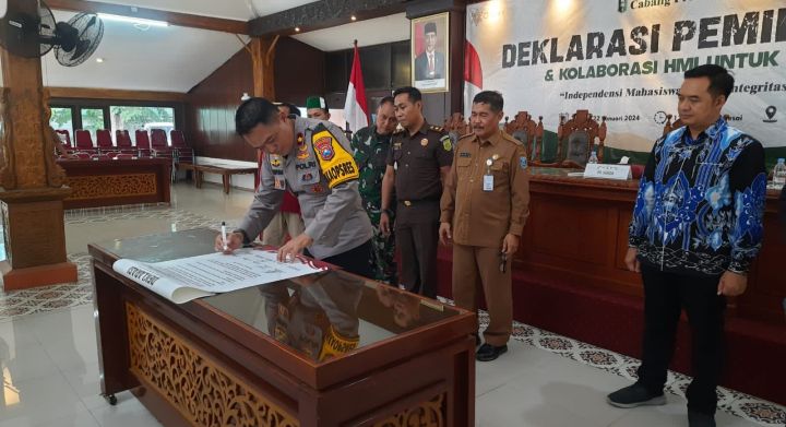Probolinggo||Liputankasus.com – Wakapolres Probolinggo Kompol Supiyan S.Sos menghadiri sekaligus mendukung kegiatan deklarasi pemilu damai yang diselenggarakan oleh pengurus HMI (Himpunan Mahasiswa Islam) Kabupaten Probolinggo, Selasa (23/1/2024).
