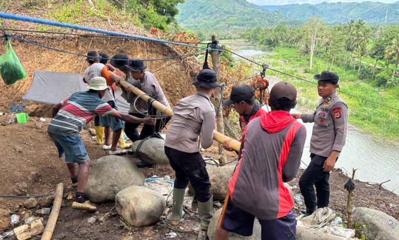 POLRI GERAK CEPAT RESPON PIDATO PRESIDEN PRABOWO, SATBRIMOBDA SULSEL BANGUN JEMBATAN GANTUNG DI SOPPENG