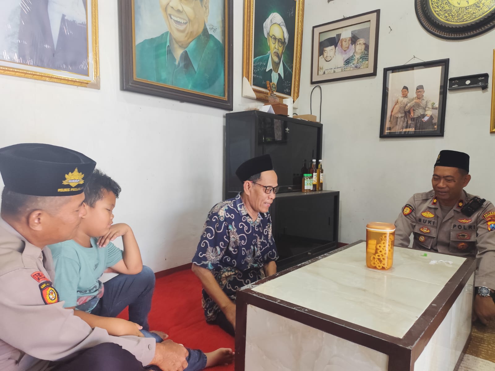 Kapolsek Beji Kompol Akhmad Sukiyanto bersama Bhabinkamtibmas Desa Gunung Gangsir, Aiptu Slamet Riyadi, diterima langsung oleh KH Ahmad Rifai selaku pengasuh Ponpes Nurul Dholam II.