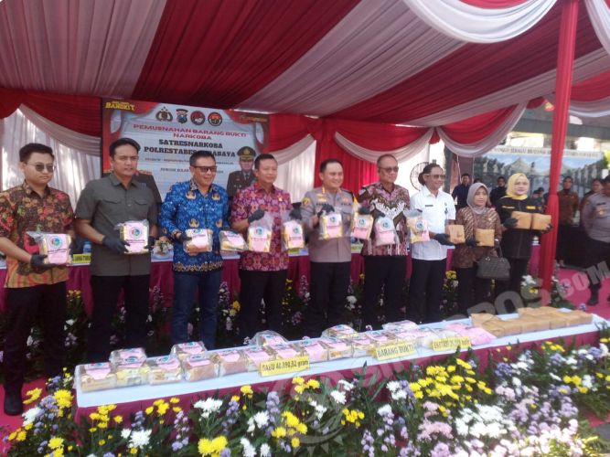 Dalam press release tersebut, Kapolrestabes Surabaya Kombes Pol Pasma Royce, menjelaskan bahwa pemusnahan barang bukti ini merupakan hasil dari penangkapan terhadap TO Bandar Narkoba dan kurir jaringan Sumatera-Jawa.