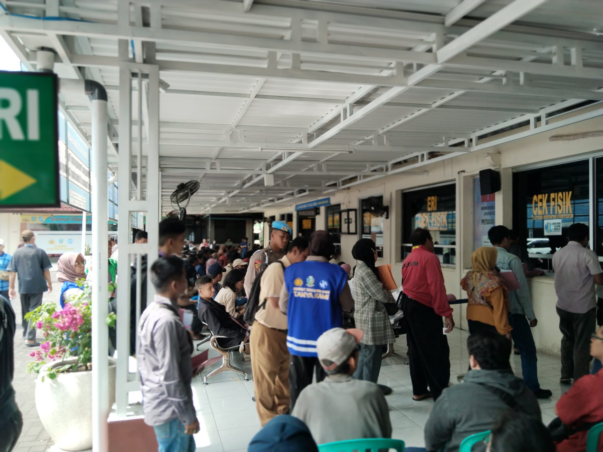 tak hanya mengarahkan petugas tersebut juga bolak-balik mengambilkan kursi yg kosong agar wajib pajak bisa tenang dan menunggu sembari proses pengecekan berkas kendaraan selesai.