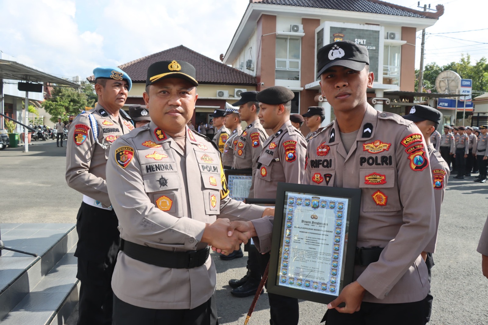 Penghargaan tersebut diberikan langsung oleh Kapolres Pamekasan disaksikan oleh sejumlah anggota lain yang digelar di Lapangan apel Mapolres Pamekasan, Rabu (5/3/2025).